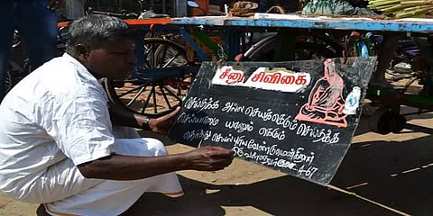 திருக்குறள் மீது தீராத ஆர்வம் - தட்டு வண்டியில் தினம் ஒரு ’குறள்’ எழுதும் பெரியவர்
