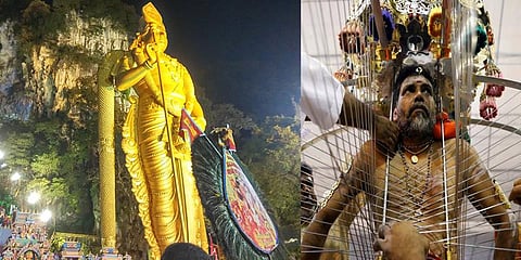 தைப்பூசத்தையொட்டி மலேசியா முருகன் கோயிலில் பக்தர்கள் காவடி சுமந்து வந்து தங்களின் நேர்த்திக்கடனை நிறைவேற்றினர்.