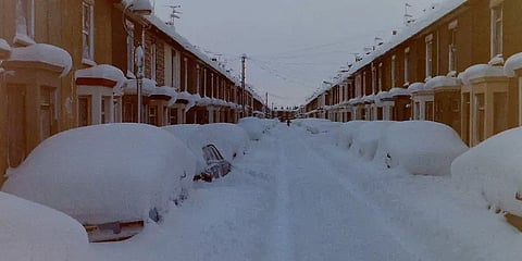 வெள்ளைப் போர்வை போர்த்திய பிரிட்டன்.. கடுமையான பனிப்பொழிவால் வீடுகளை படர்ந்த பனி!