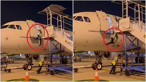 இந்தோனேஷியா| நகர்த்தப்பட்ட படிக்கட்டு.. விமானத்தில் இருந்து விழுந்த ஊழியர்.. #ViralVideo